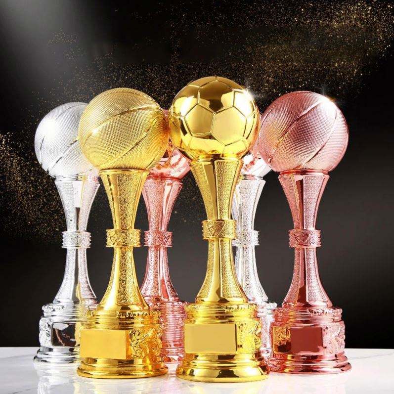 Trophée de football personnalisé en polyrésine dorée, coupe de récompense sur mesure, grand trophée en résine dorée à vendre