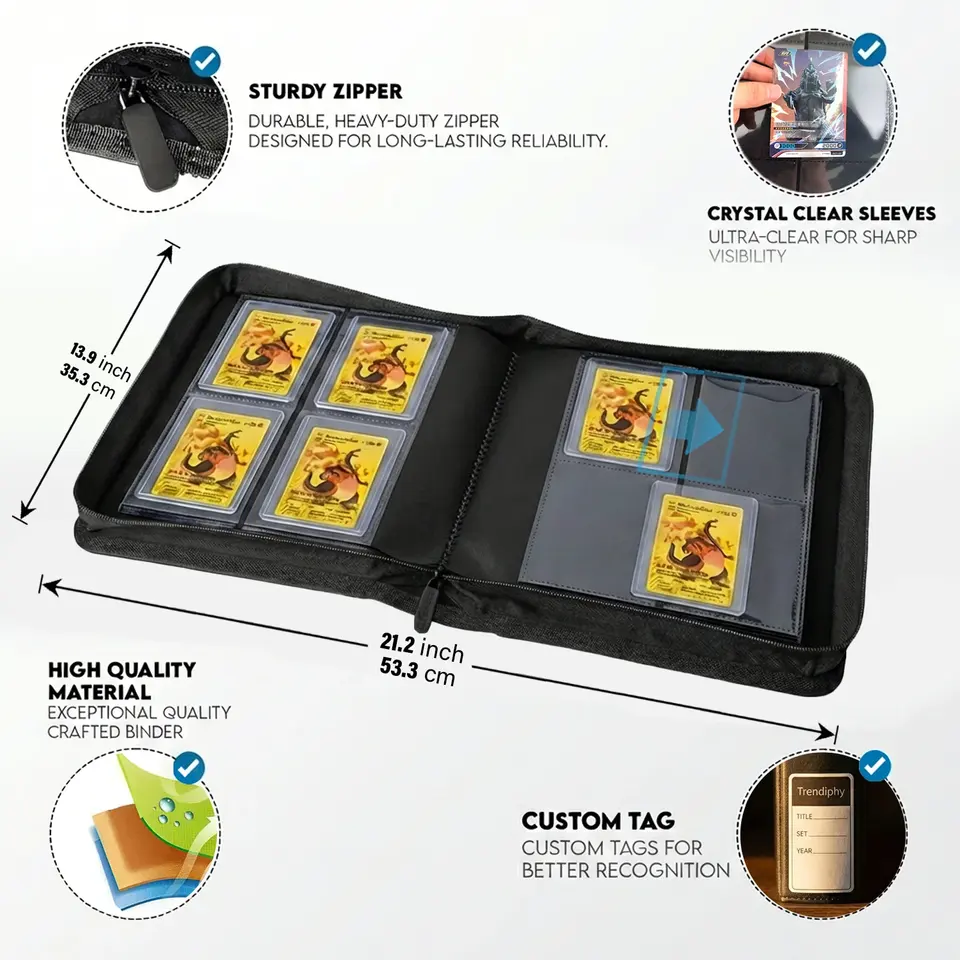 Classeur de cartes à collectionner haut de gamme personnalisé, étanche, à 4 pochettes, pour le rangement de collections de cartes TCG