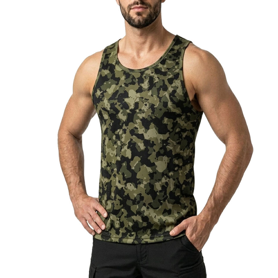 Débardeur de sport camouflage personnalisé pour homme, haute élasticité, coupe ajustée, prix de gros