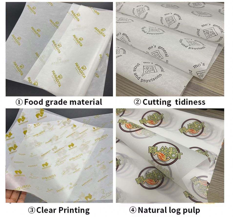 Papier paraffiné personnalisé avec logo imprimé, résistant à la graisse, pour beurre et sandwichs