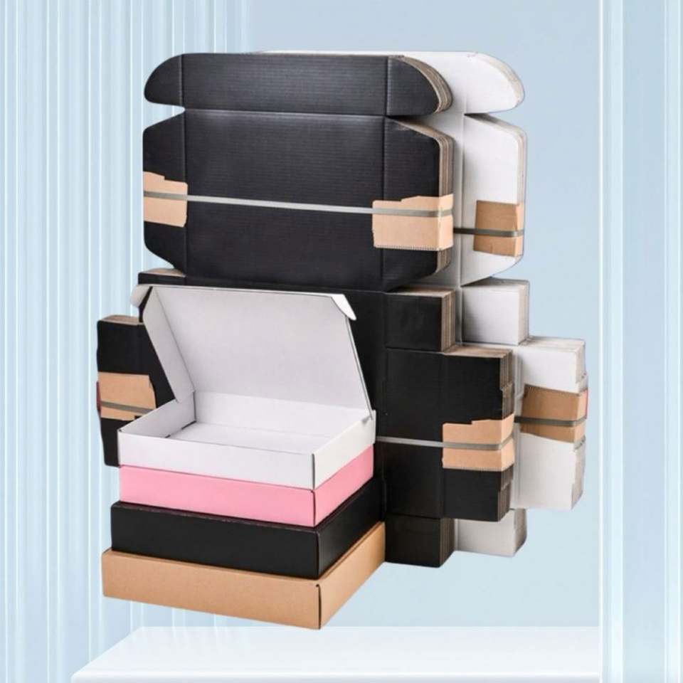 Boîte d'emballage et d'expédition pour vêtements en carton ondulé recyclable avec impression personnalisée et laminage mat