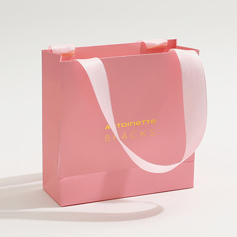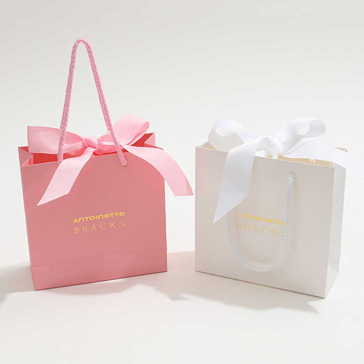 Sacs cadeaux en papier pour bijoux avec ruban imprimé personnalisé, avec nœud, logo personnalisé, sac d'emballage de luxe avec poignée en ruban