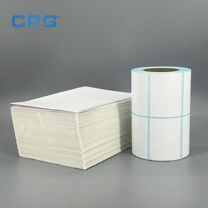 Papier d'étiquettes thermiques imperméables 4x4 pouces (100x150mm) 120gsm pour affichage sur étagère de supermarché, fourni directement par l'usine
