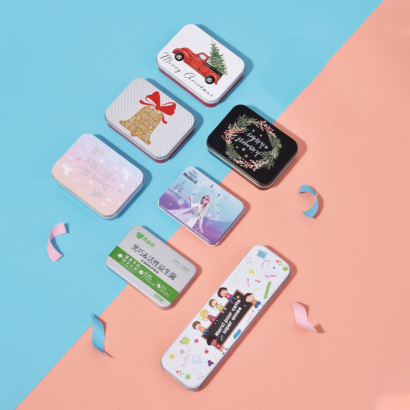 Emballage en métal rectangulaire en fer blanc personnalisé avec impression et logo pour le stockage de crayons et de cartes de qualité alimentaire