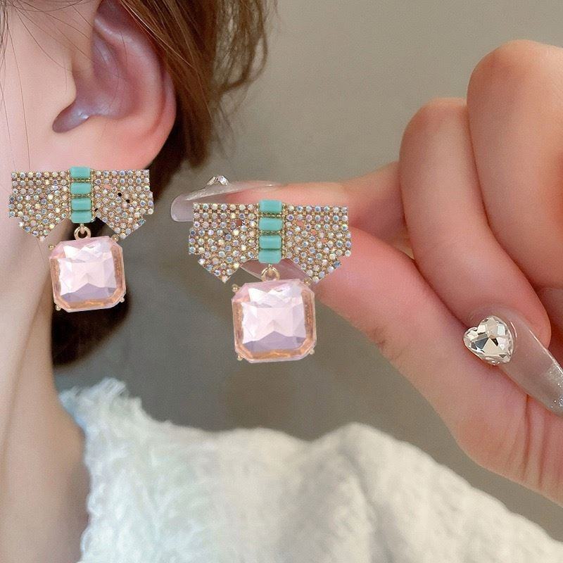 Customized Professional Design Fashionable Luxury Diamond Studded Flower Bow Earrings Party Gold Plated Women's Support Color