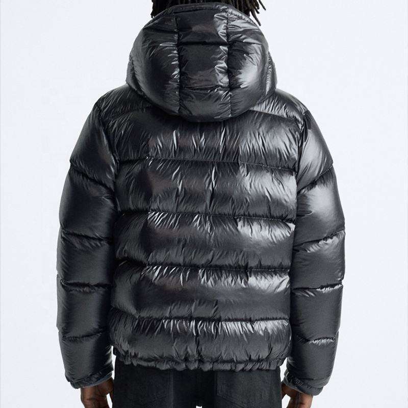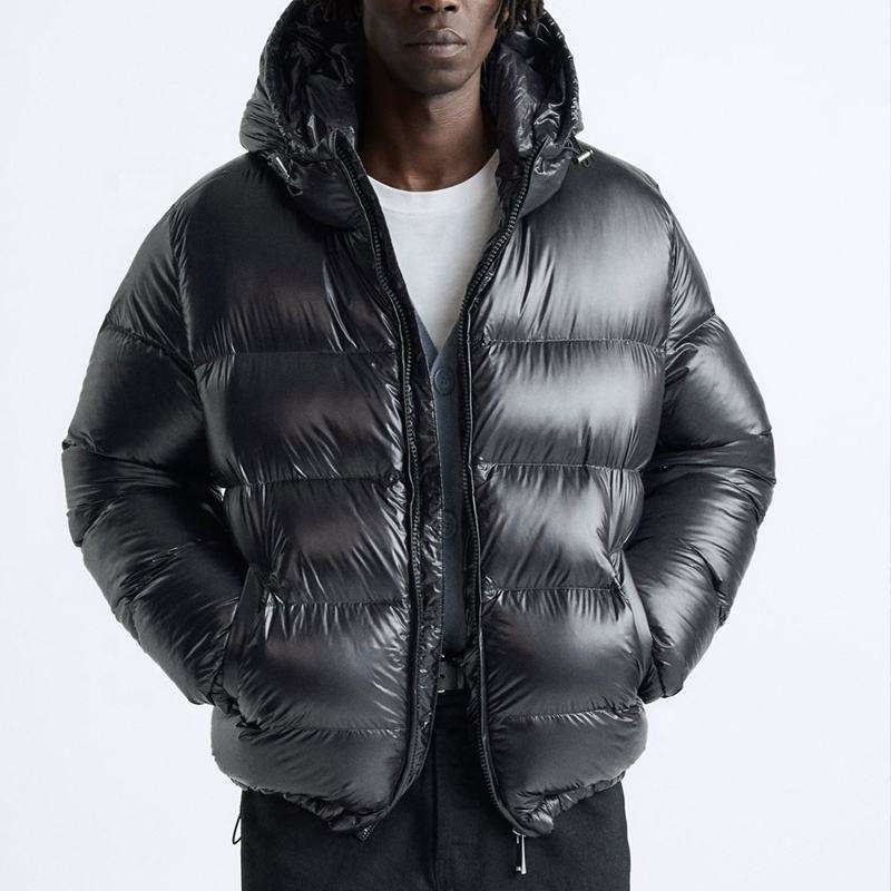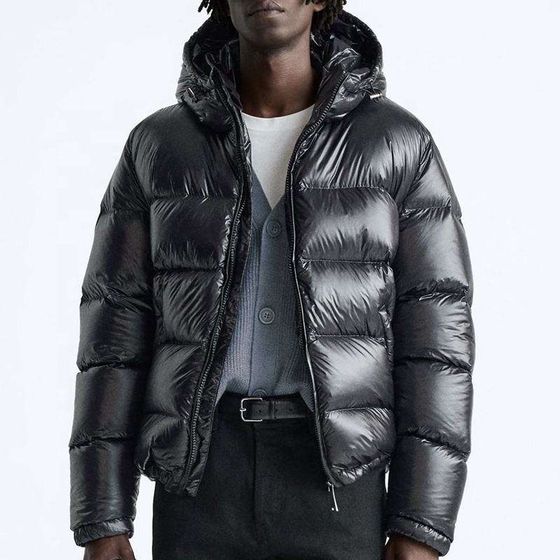 Veste matelassée à capuche personnalisée brodée pour homme, taille plus, noire, rembourrée, décontractée, fermeture éclair, imperméable, hiver, polyester/nylon