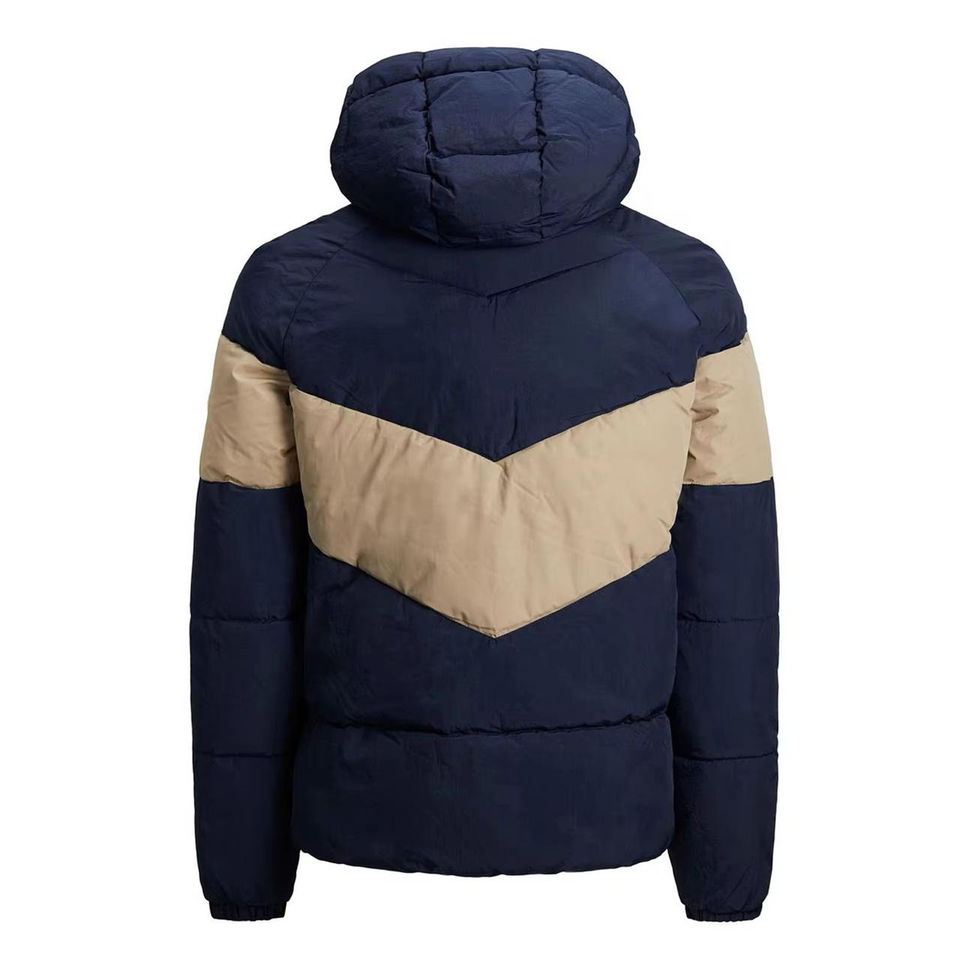 Veste d'hiver rembourrée imperméable à capuche avec fermeture éclair sur le devant en toile et nylon personnalisée pour hommes avec rembourrage en polyester