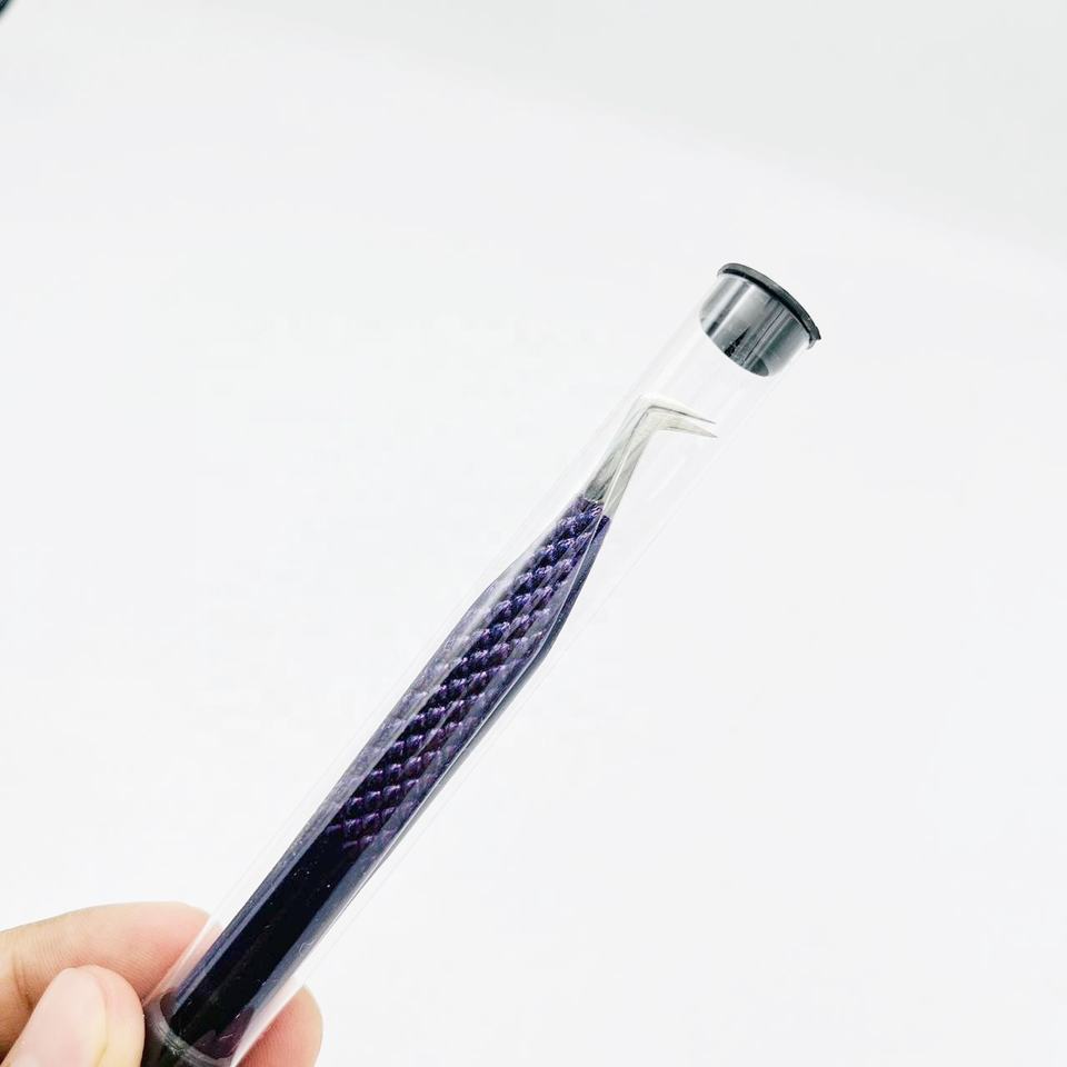 Pince à cils personnalisée violet de type L, poignée en diamant, acier durable pointu poli à 90 degrés avec revêtement de logo de couleur