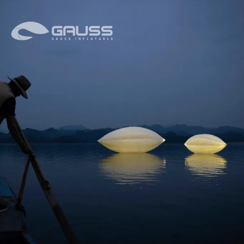 Ballon léger gonflable publicitaire en PVC personnalisé sur l'eau Forme de graine avec lumières LED Décorer gonflable