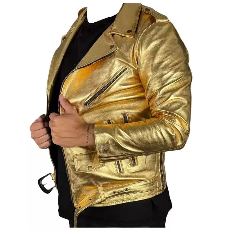 Veste en cuir Racer personnalisée en cuir de mouton véritable souple style motard en cuir doré vestes brodées personnalisées de haute qualité 2025