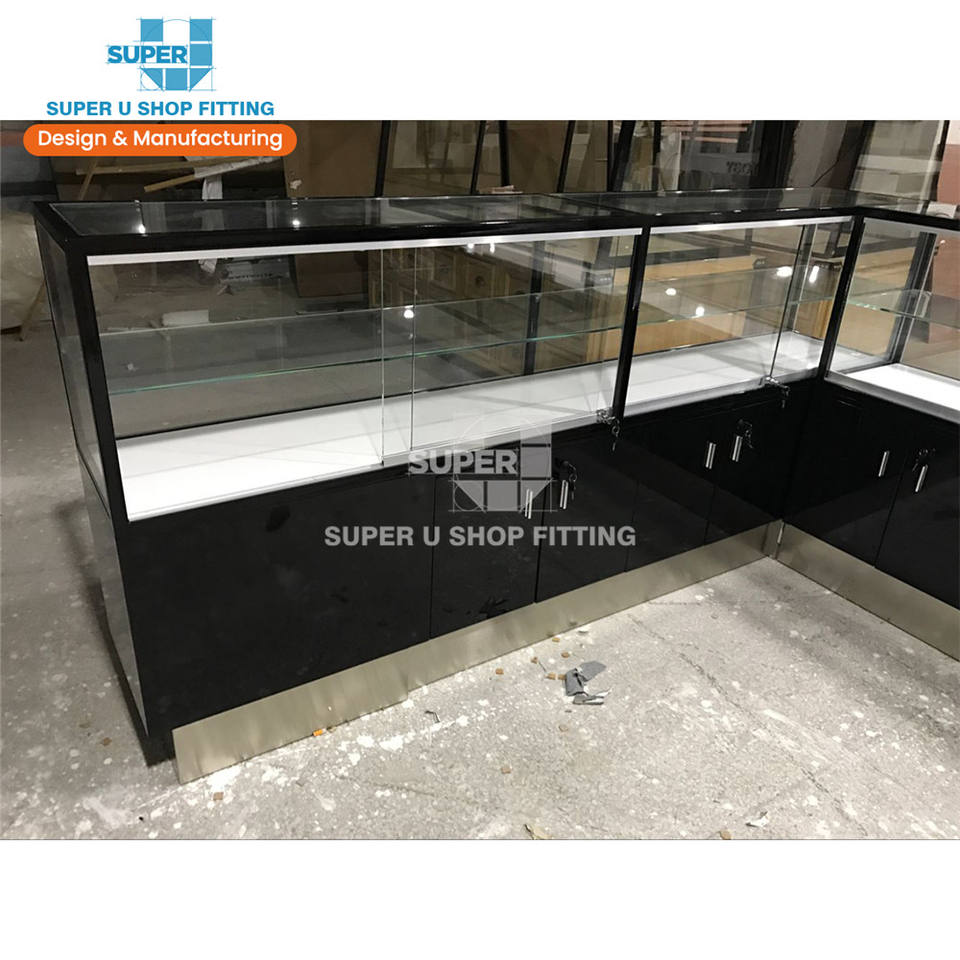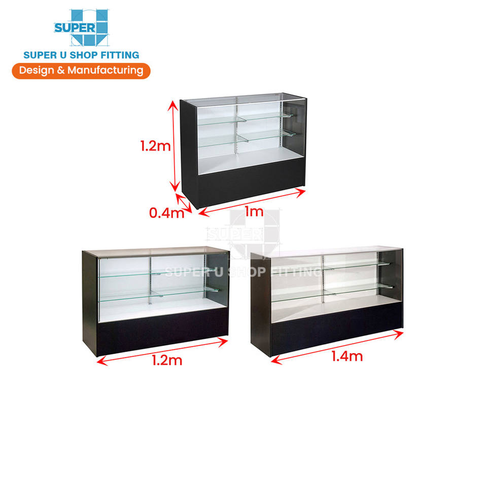 Vitrine d'exposition pour magasin, comptoir de présentation, vitrine en verreTitre du sujet