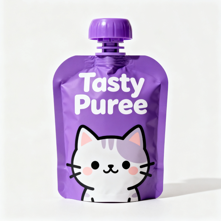 Pochette de bec d'emballage réutilisable personnalisée avec bouchon à vis Pochette de buse en papier d'aluminium portable pour purée savoureuse Sacs en mylar pour nourriture pour chat