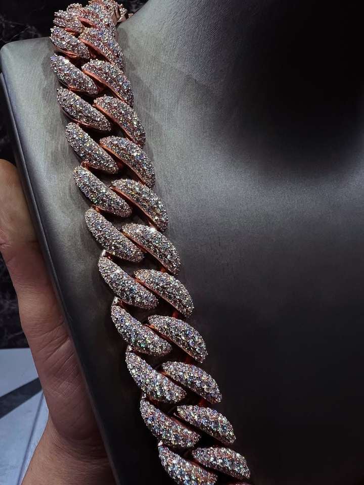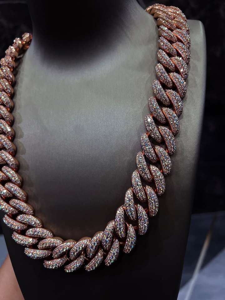 Chaîne cubaine en or rose personnalisée avec diamant moissanite taille ronde, bijoux de corps unisexe avec placage, cadeau pour lui et elle