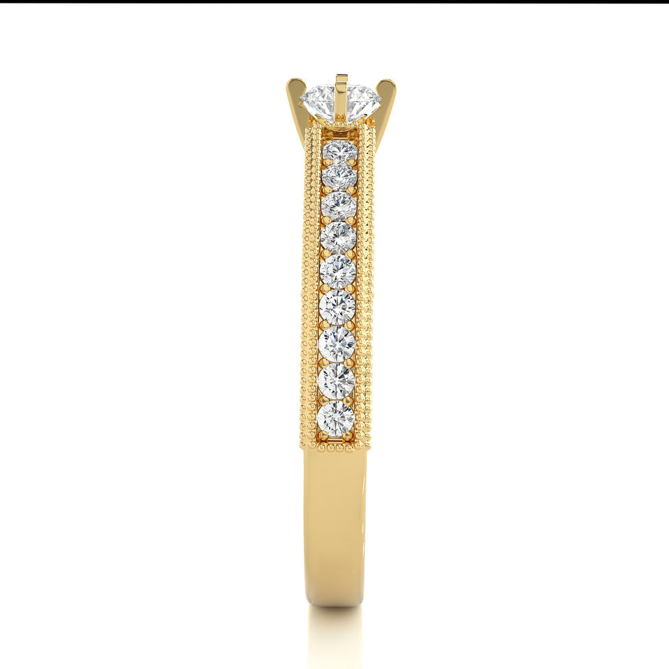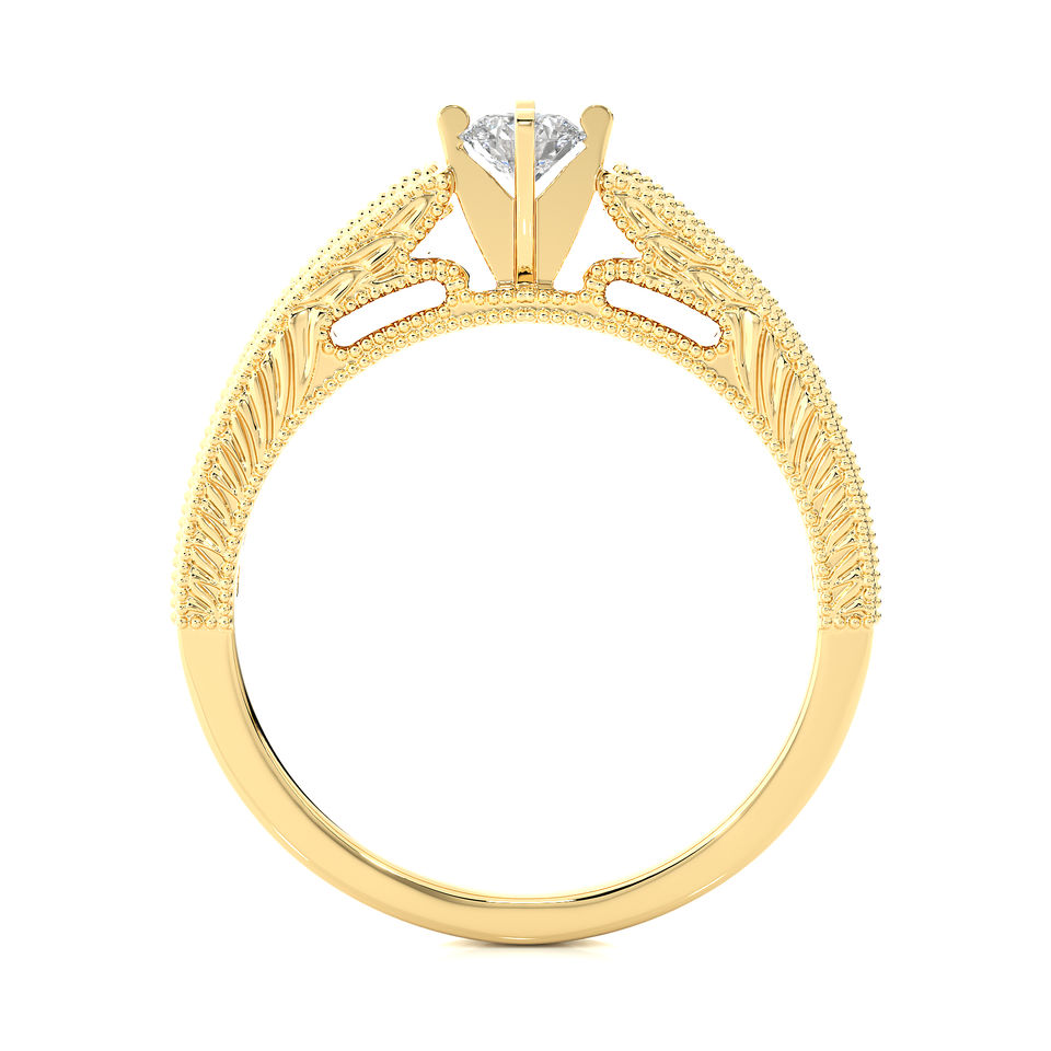 Bague personnalisée de forme ronde en diamant cultivé en laboratoire Solitaire Accent Bague de mariage en or jaune 14K avec diamant pour femmes