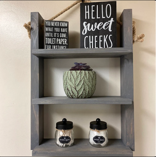 Étagère à échelle en bois suspendue en corde rustique personnalisée au-dessus des toilettes pour le rangement salle de bain organisateur en bois