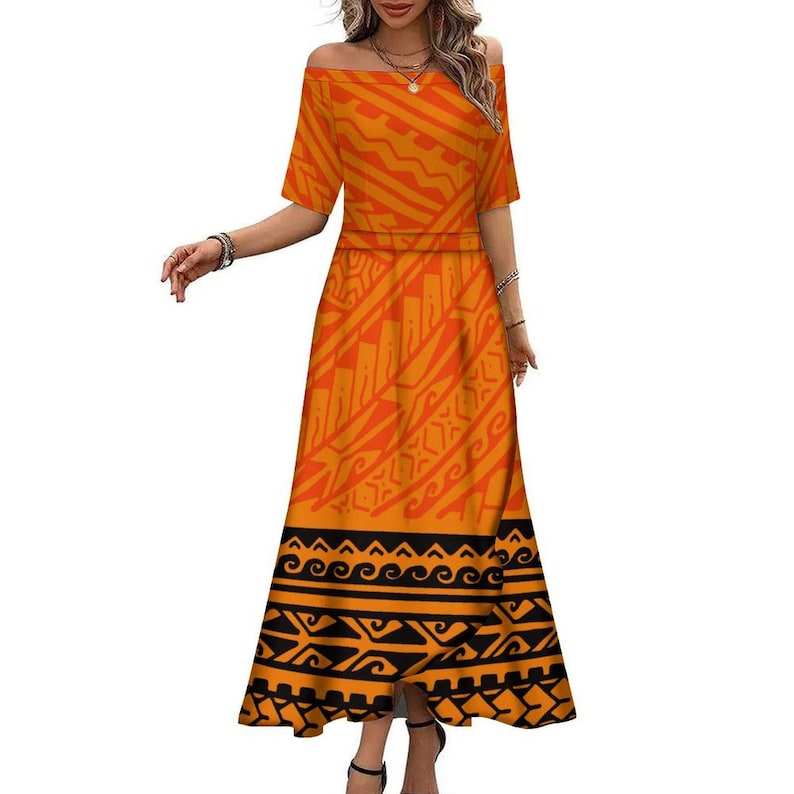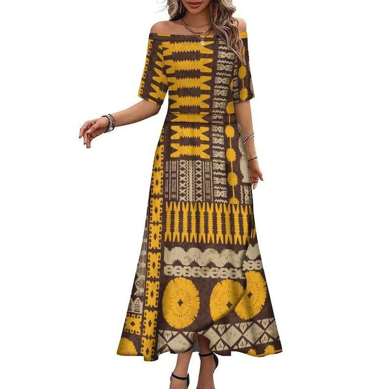 Robe longue maxi personnalisée à épaules dénudées de style tribal polynésien samoan pour femmes, robe d'été à demi-manches pour l'île