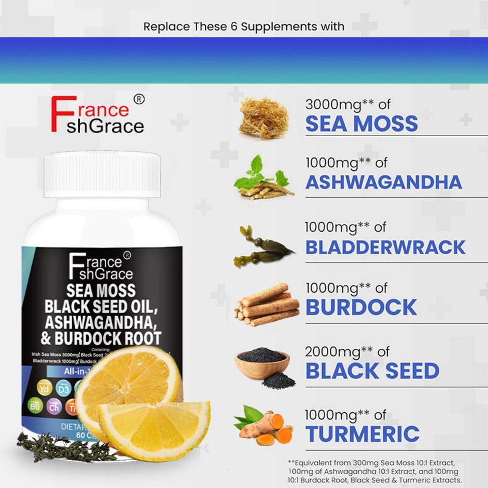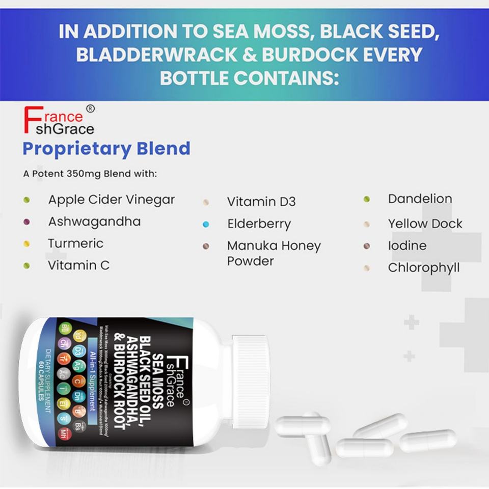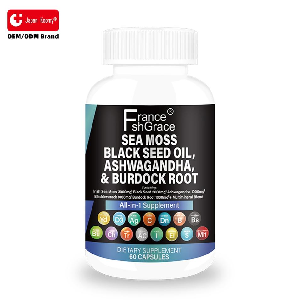 Capsules d'extrait de plantes de mousse marine personnalisées, huile de graines noires, soutien du système immunitaire, 60 capsules, complément de mousse marine