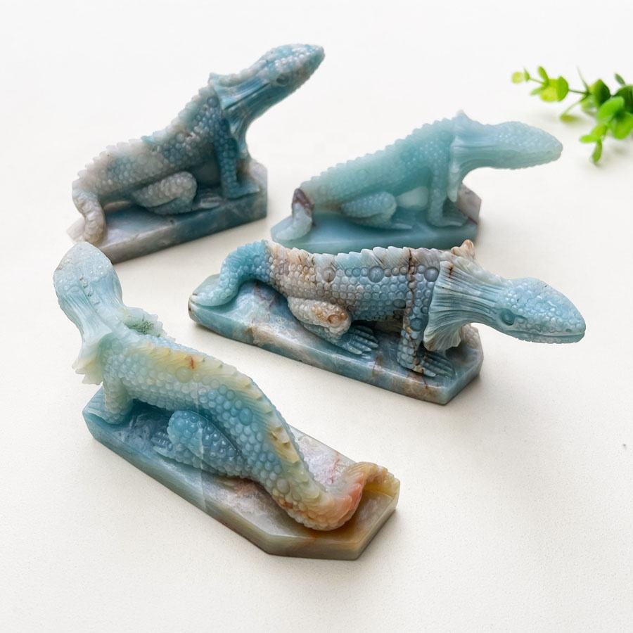 Pierre semi-précieuse personnalisée artisanat cristal Cabrite sculpture Amazonite Quartz lézard pour la décoration