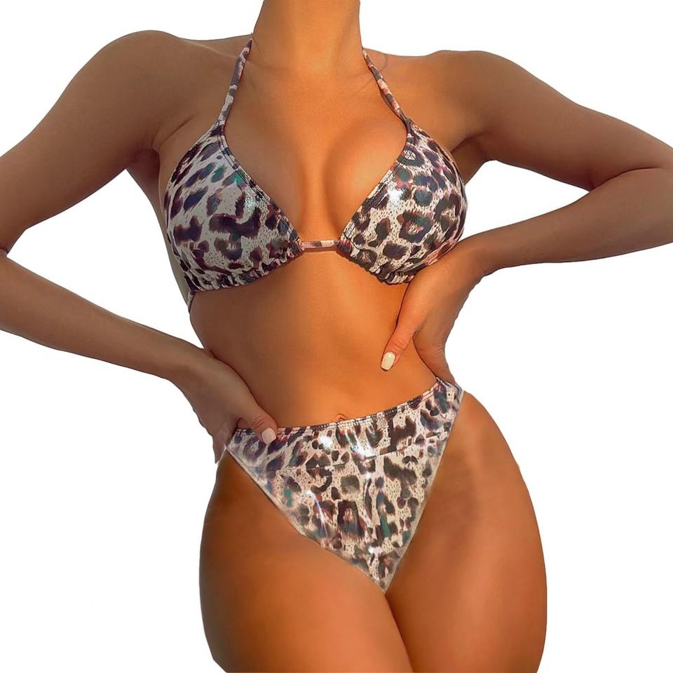 Maillot de bain bikini deux pièces sexy imprimé léopard personnalisé, mini-string de luxe pour femme, tenue de plage et de fitness