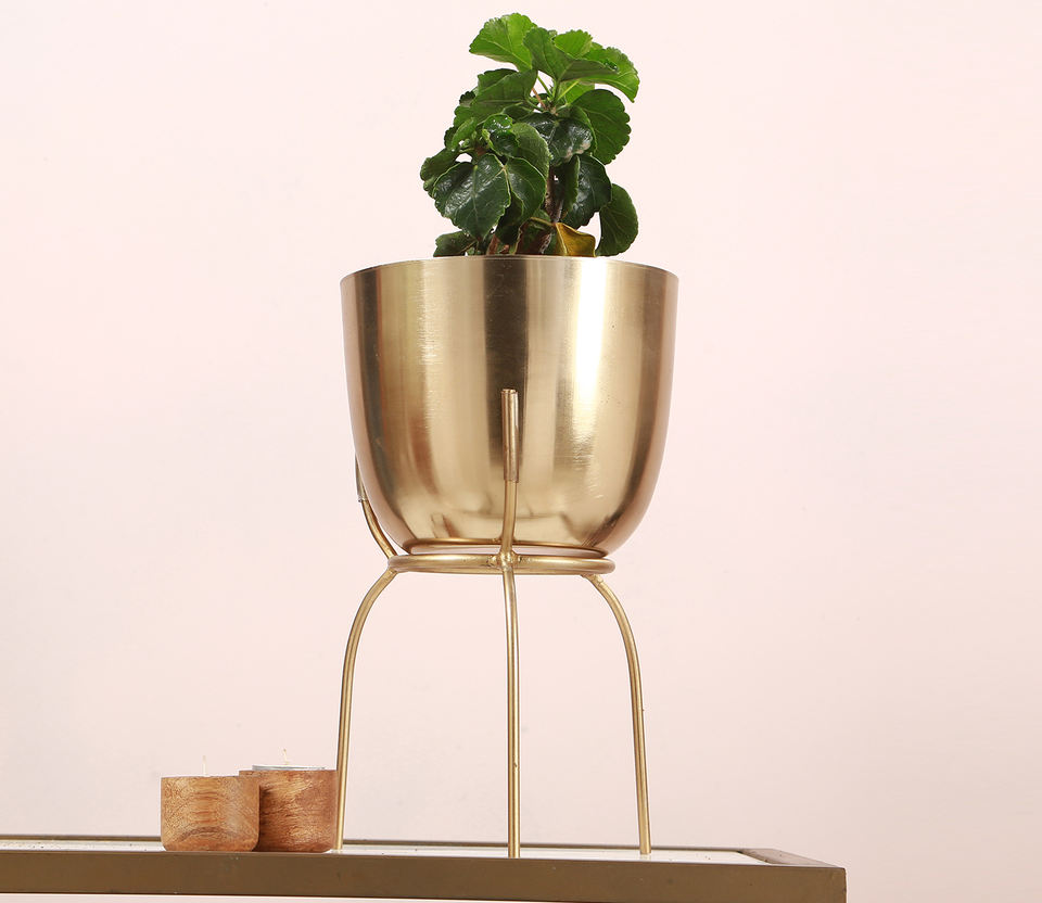 Forme et taille personnalisées, pot de fleurs rond en métal de couleur dorée, grand pot de fleurs en acier inoxydable à un prix abordable