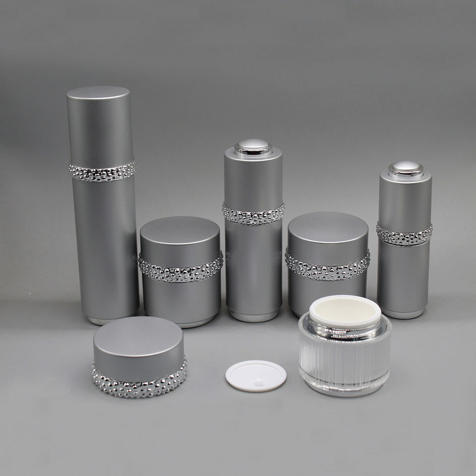 Ensemble de cosmétiques personnalisés en argent pour soins de la peau Conteneur d'emballage 30g 50g 30ml 50ml