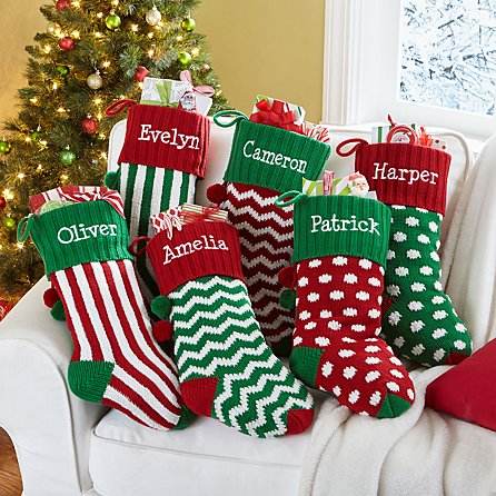 Chaussettes de Noël tricotées vertes et rouges à motif de rayures simples personnalisées