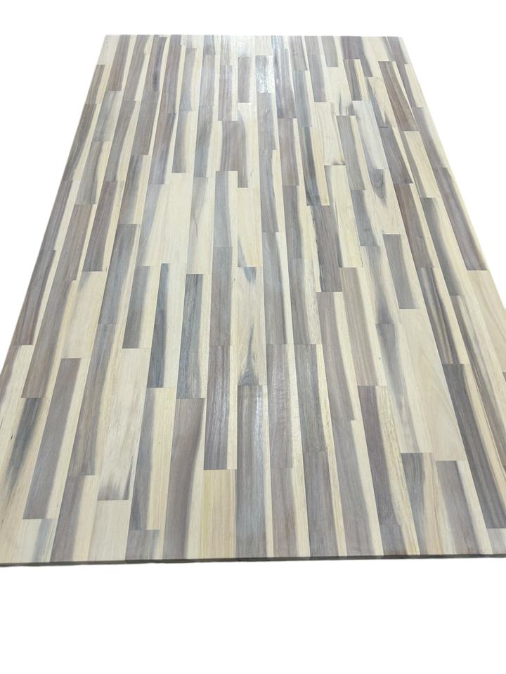 Plan de travail de cuisine en bois d'acacia contemporain sur mesure, panneaux jointés, finition huile multicolore, stratifié de haute qualité