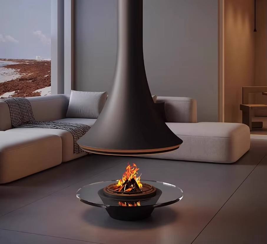 Cheminée électrique au carbone suspendue au plafond, cheminée à granulés, taille personnalisée, diamètre de 600 mm à 1200 mm