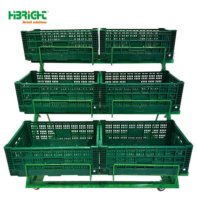 Taille personnalisée double face robuste combinaison de métal supermarché îlot présentoir de légumes double face à usage intensif