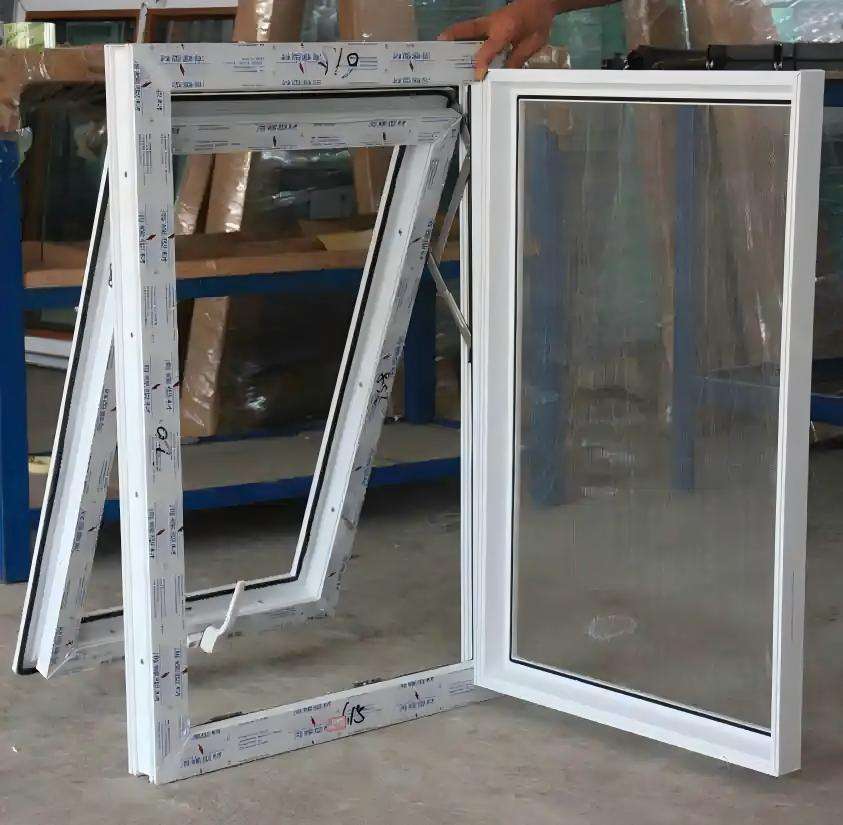 Customized Size Double Tempered Glass Plastic Tilt Turn Window Swing Horizontal UPVC Frame Soundproof Glass windows