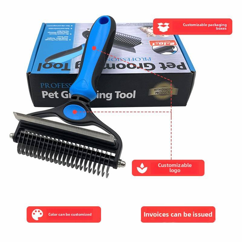 Peigne pour chien à double tête de taille personnalisée, épilateur magique en acier inoxydable, fournitures pour animaux de compagnie pour chats et chiens