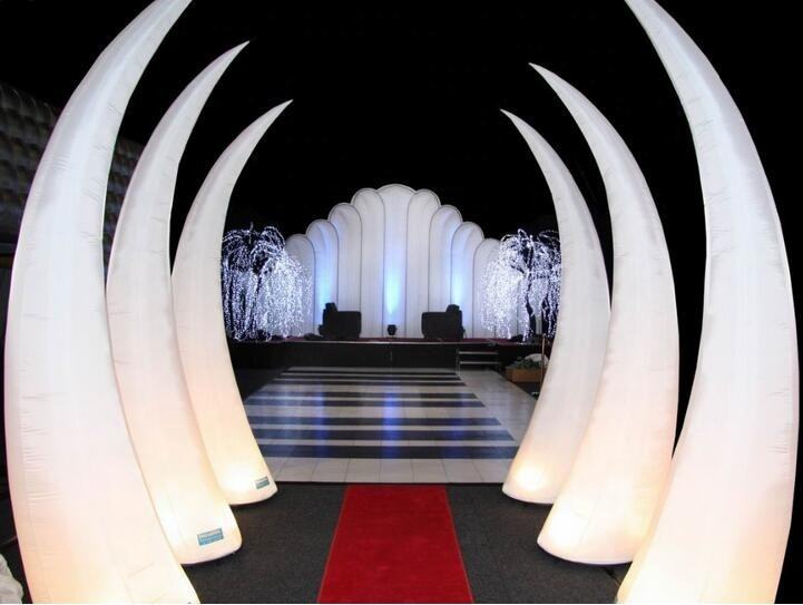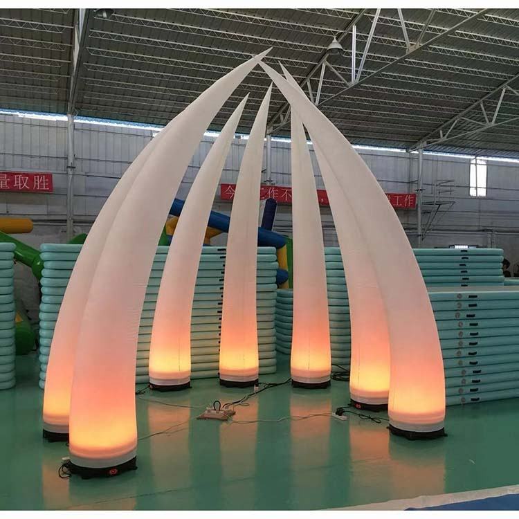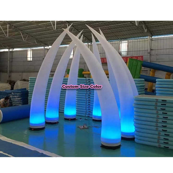 Lumières LED ivoire de défense gonflable de taille personnalisée cône gonflable éclairé de pilier gonflable pour la décoration de mariage événement