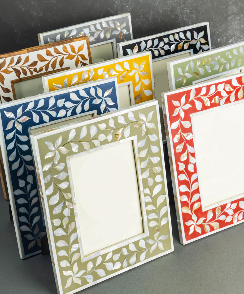 Cadre photo en bois de taille personnalisée de meilleure qualité avec incrustation de nacre verte décoration MOP