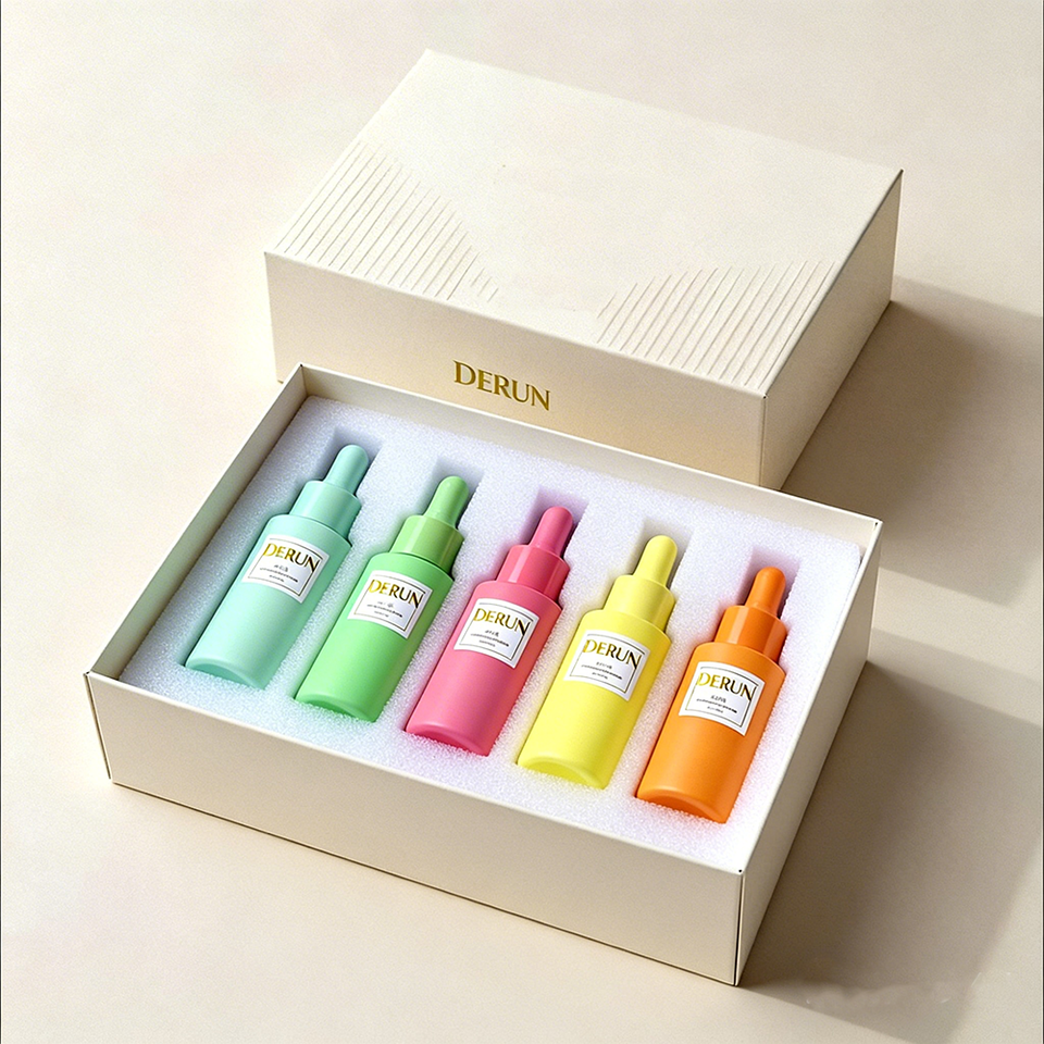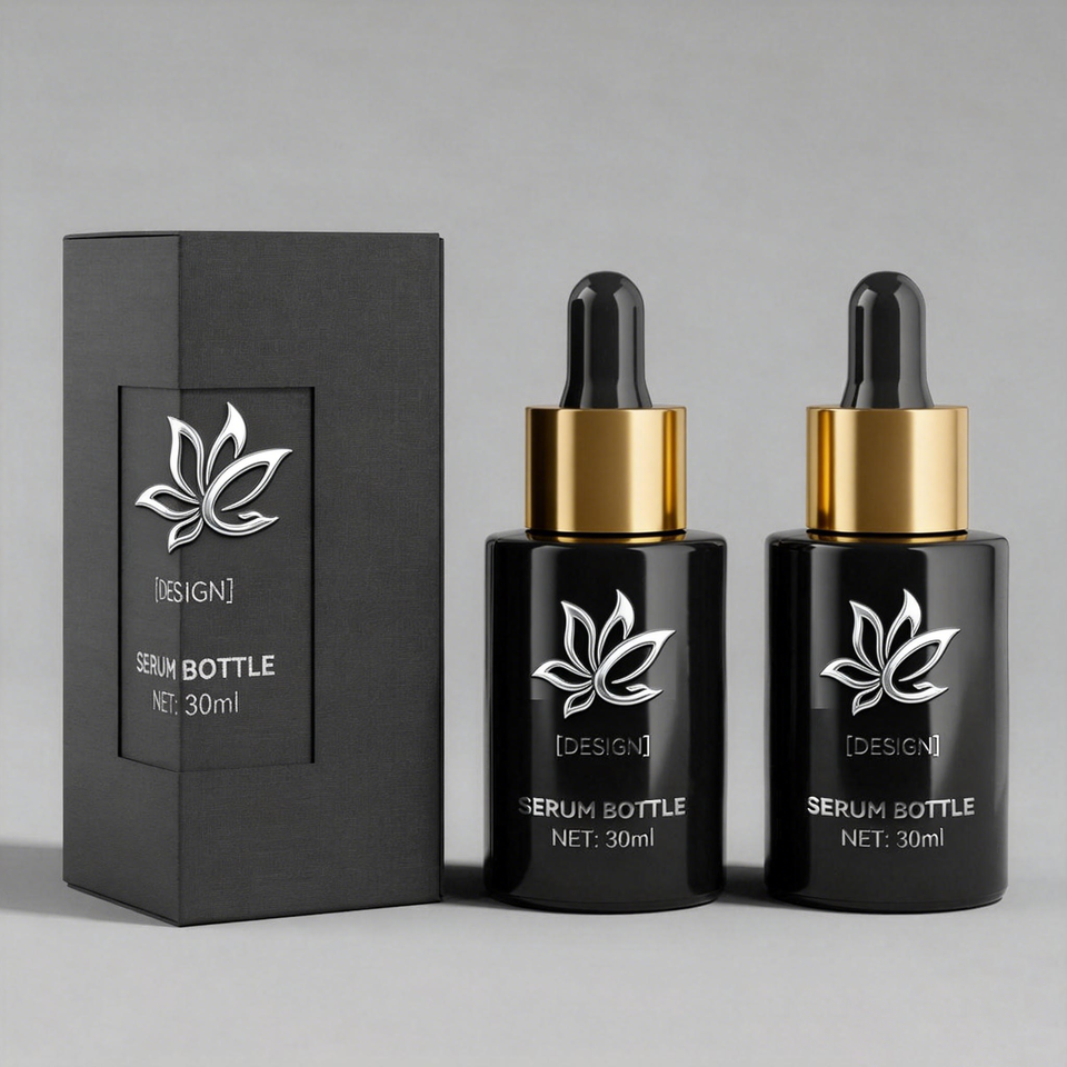 Flacon compte-gouttes vide personnalisé pour soins de la peau, ambre givré, 100 ml, bouchon doré, flacon de sérum de luxe 50 ml avec boîte