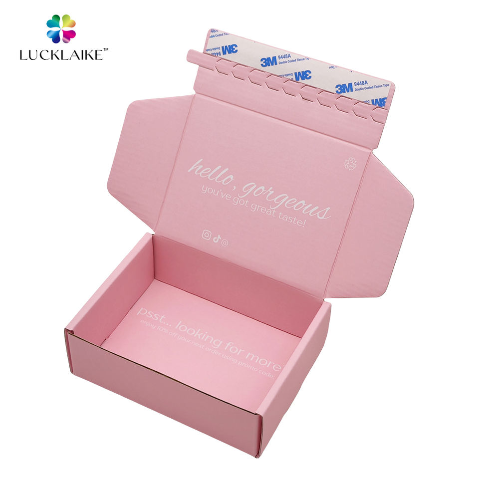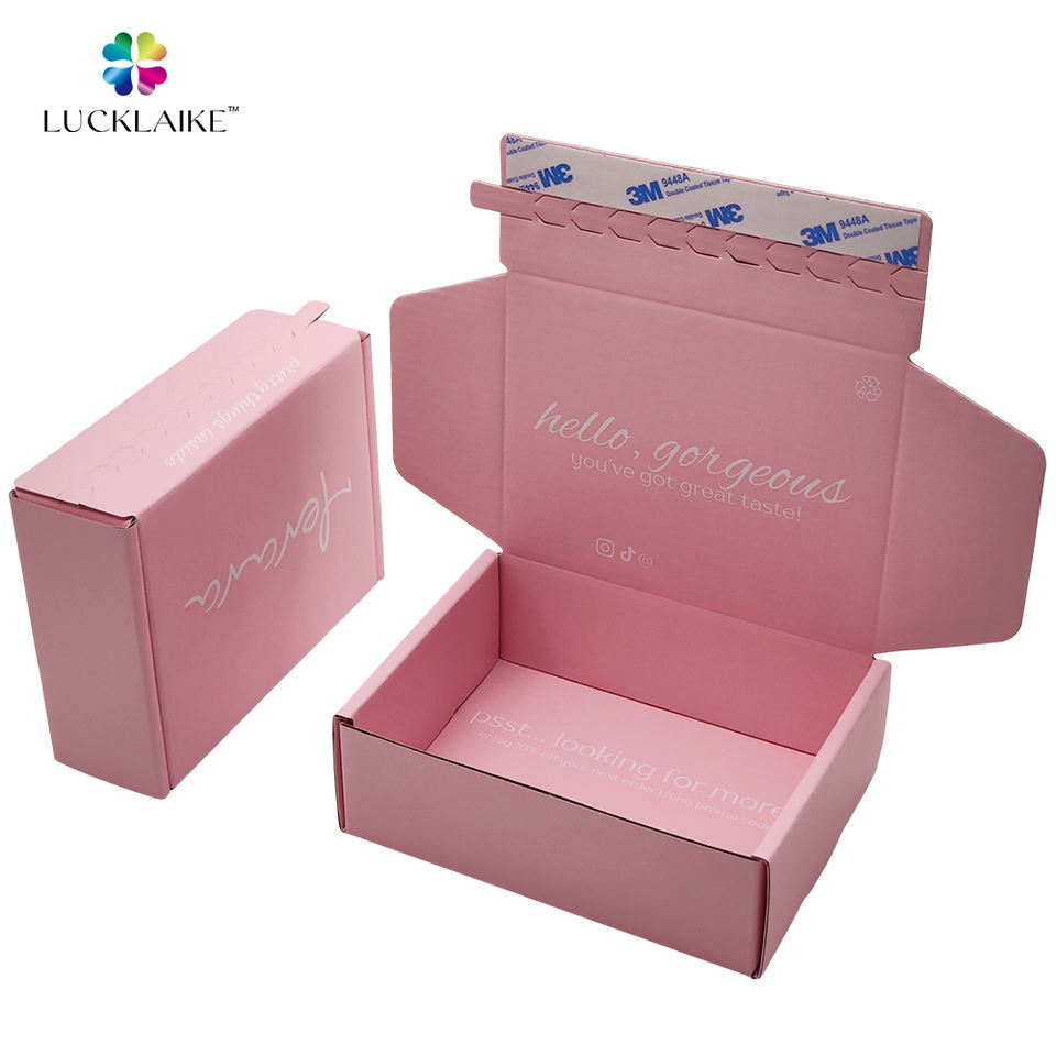 Emballage personnalisé pour soins de la peau, boîte en carton ondulé rose clair avec fermeture éclair auto-adhésive et bande détachable pour l'envoi postal