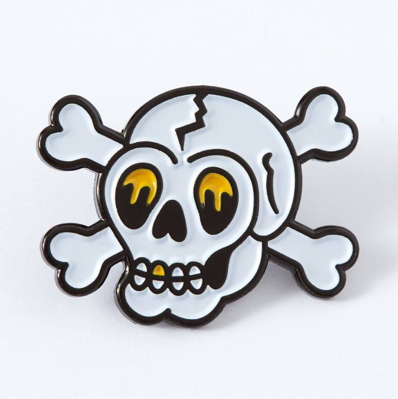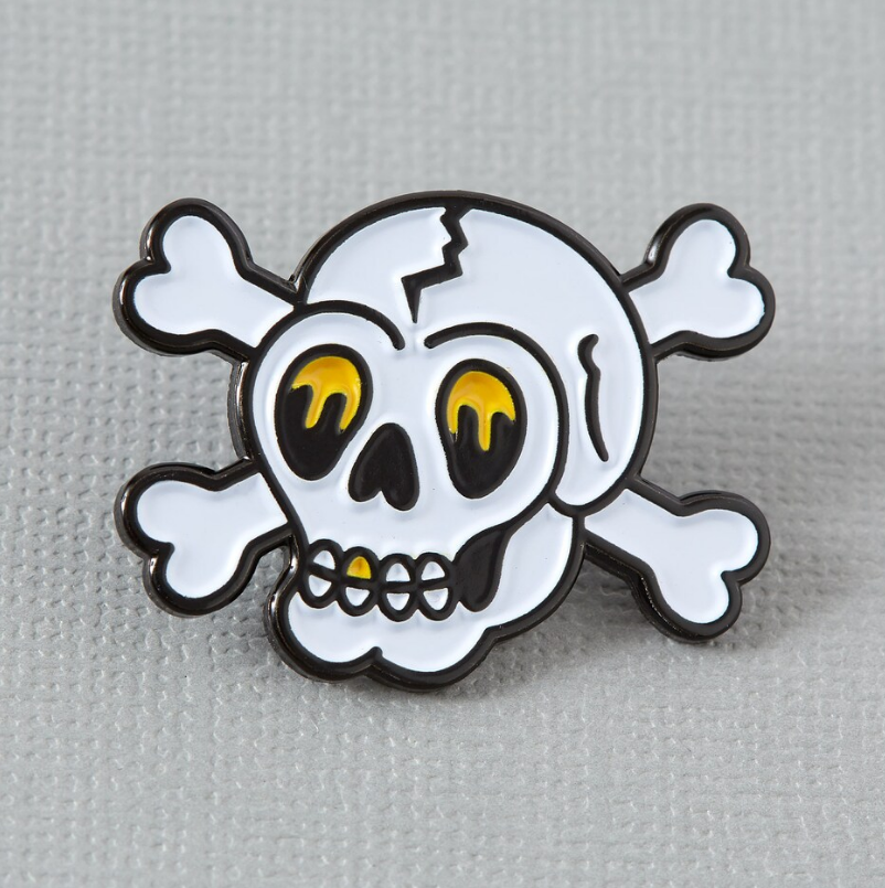 Broche Crâne Personnalisée en Acier Inoxydable 316L, Épinglette Émaillée Os Croisés, Badge Illustration Tatouage Crâne et Os Croisés