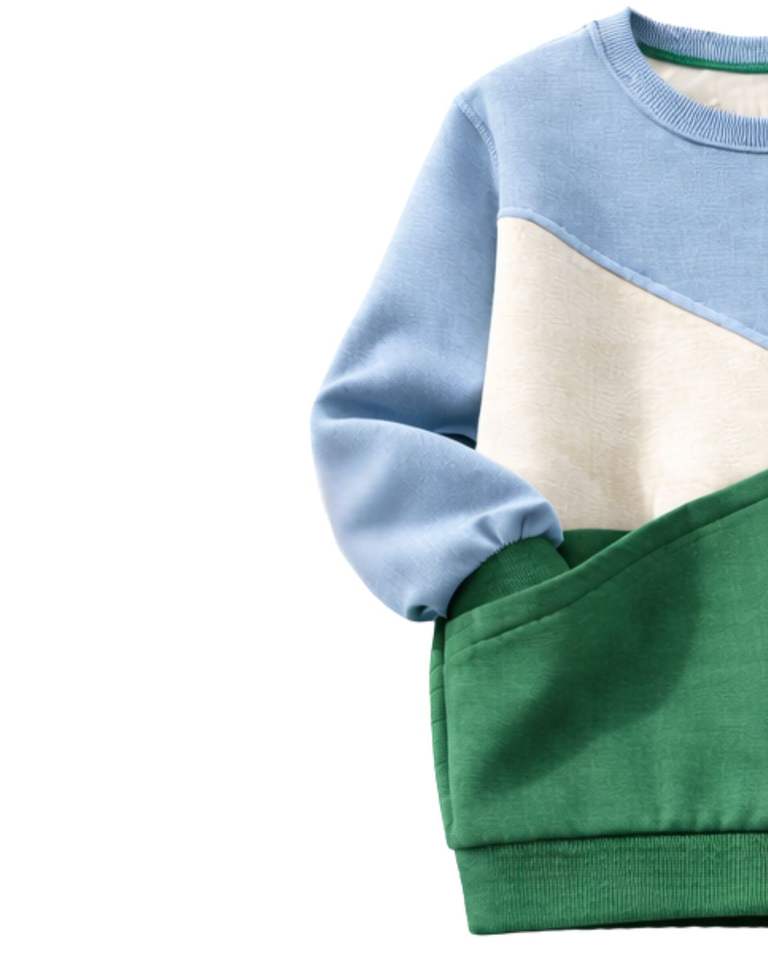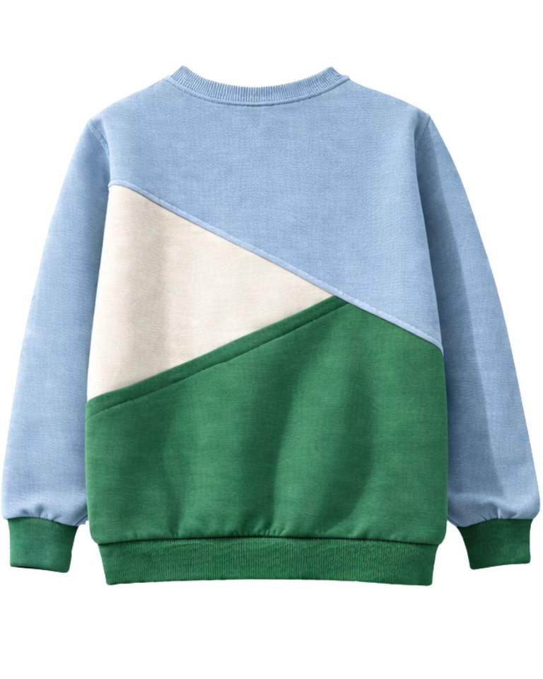 Sweat-shirt en molleton personnalisé bleu ciel et vert à blocs de couleur avec fleurs brodées pour femme, col rond en mélange de coton, décontracté d'hiver, OEM