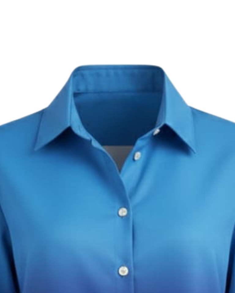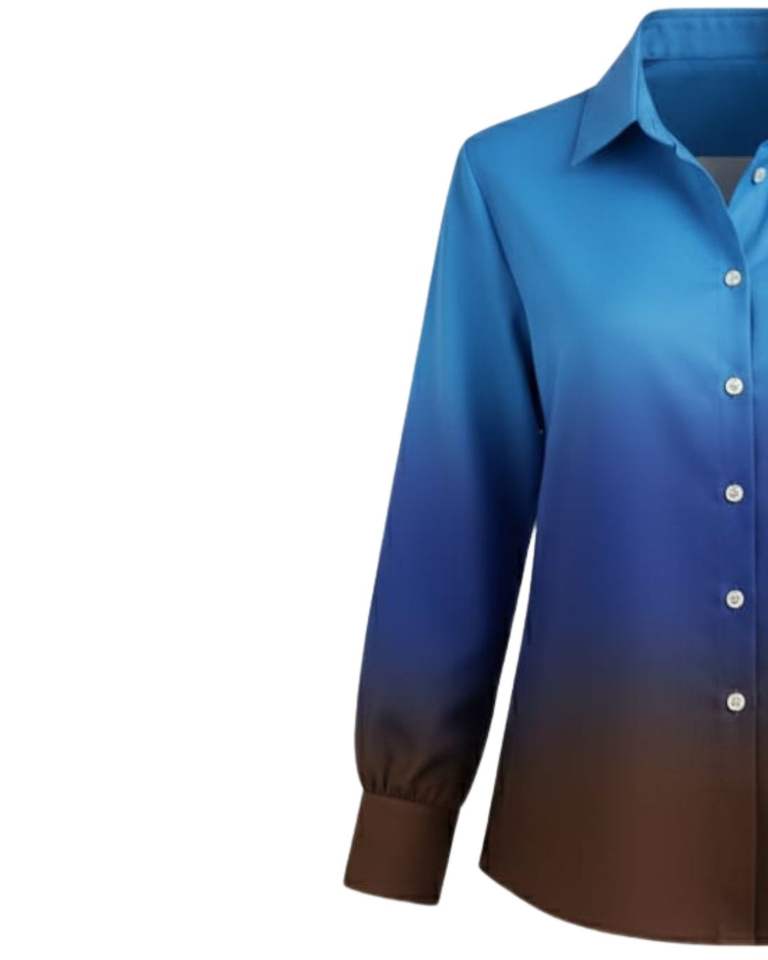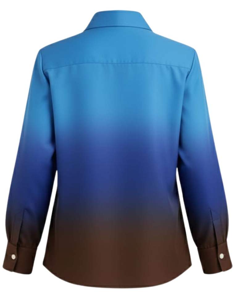 Chemise boutonnée à manches longues pour femme, dégradé bleu ciel vers bleu marine et marron, style décontracté pour le bureau, fabrication sur mesure OEM