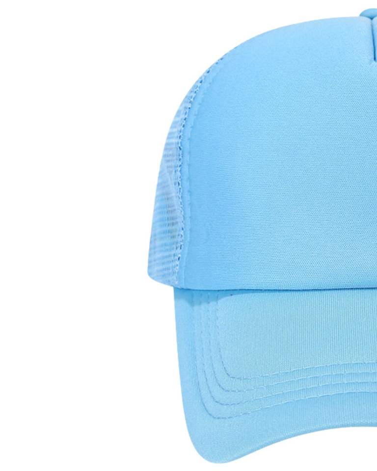 Casquette de camionneur bleu ciel personnalisée, dos en maille, fermeture snapback réglable, respirante, en polyester, avec devant en mousse, logo personnalisé, casquette de baseball vierge