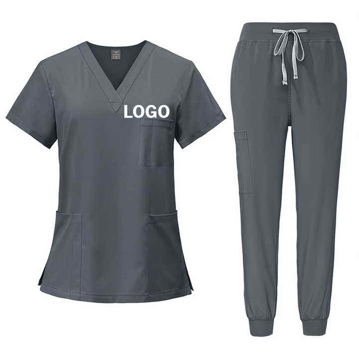 Uniforme d'infirmière Slim Fit personnalisé Top à manches courtes Joggers Scrubs pour l'hôpital Spa Stretch Spandex Scrubs personnalisés