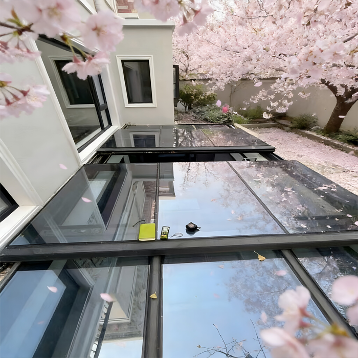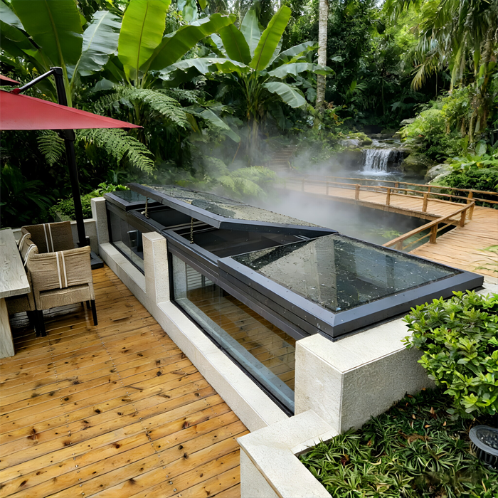 Puits de lumière coulissant automatique en alliage d'aluminium personnalisé de petite taille avec isolation thermique et caractéristiques imperméables pour le toit de la cuisine, la pergola