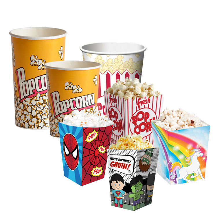 Gobelets en papier personnalisés de petite et grande taille, rayés, unis, 3 200 ml, écologiques, jetables, pour l'emballage alimentaire, les collations, les chips de pommes de terre, le pop-corn