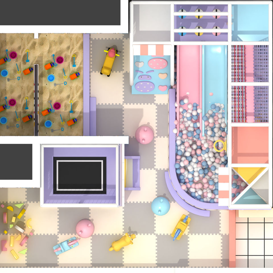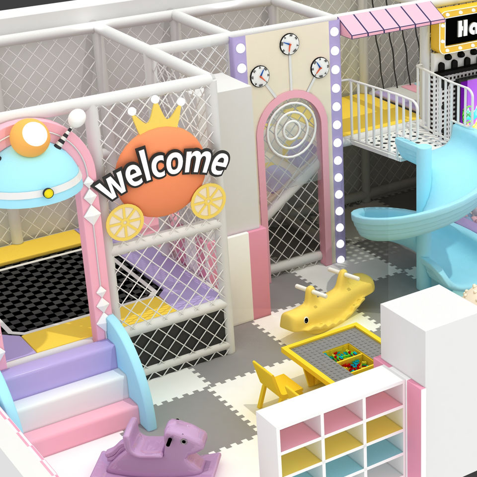Équipement de terrain de jeu intérieur souple personnalisé, petit terrain de jeu intérieur pour enfants avec toboggans et jeux