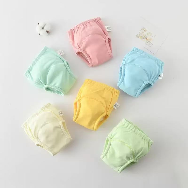 Personnalisé couleur unie tricoté coton doux bébé réutilisable pot formation pantalon infantile enfant en bas âge toilette apprentissage pipi urine sous-vêtements