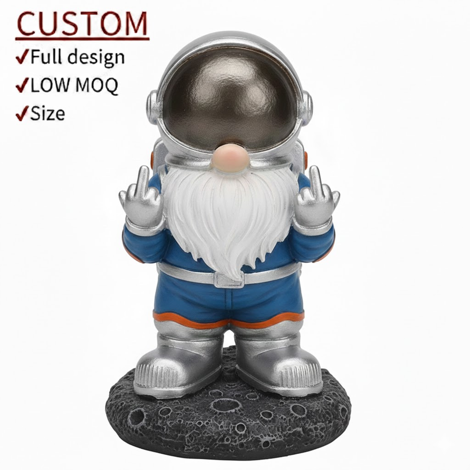 Statue de jardin personnalisée en résine époxy, thème spatial artistique, astronaute et fusée, figurine de gnome sculptée, art de jardin unique