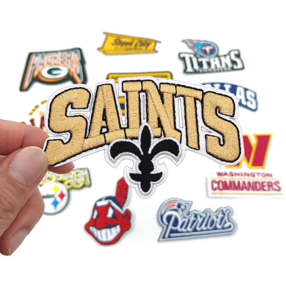 Patch brodé personnalisé fait main en tissu sergé pour les Saints de la Nouvelle-Orléans, à thermocoller