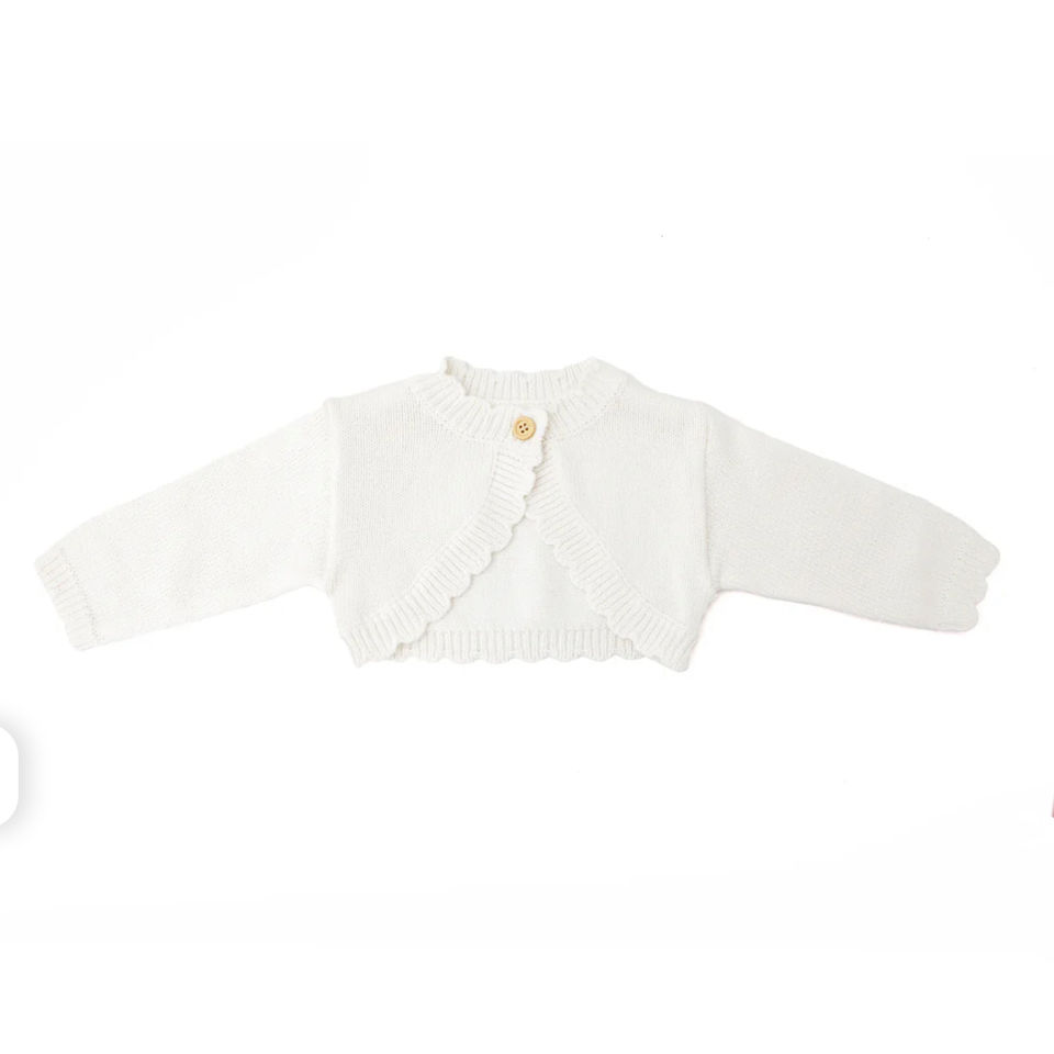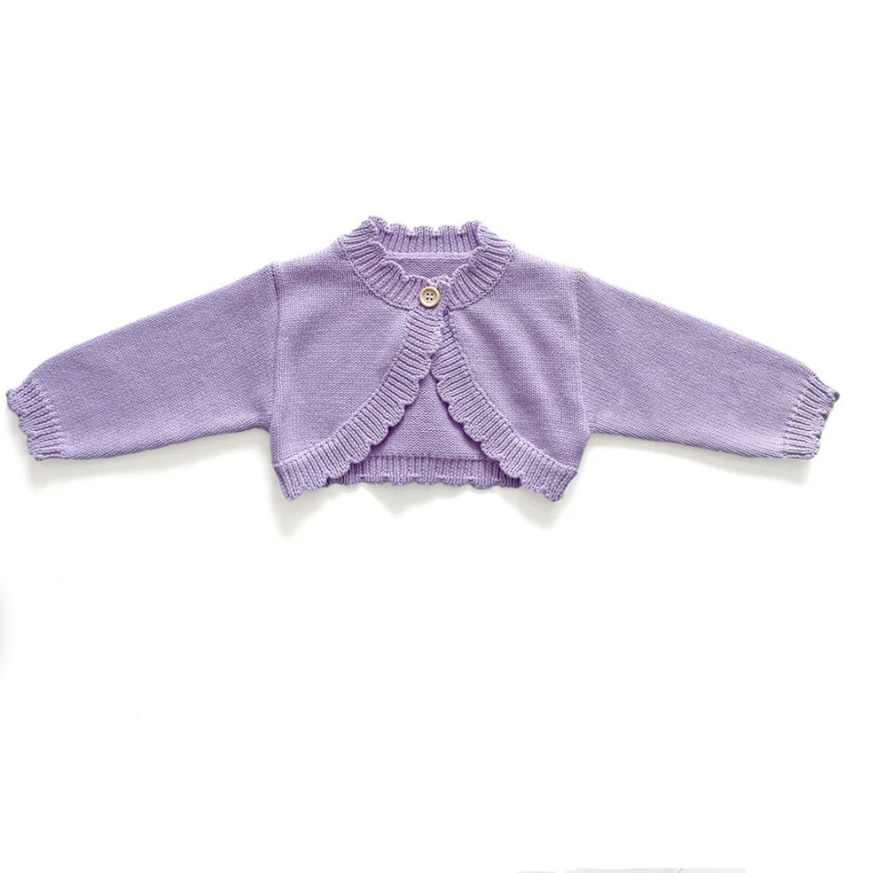 Ensemble personnalisé pour nouveau-né fille : cardigan en tricot 100 % coton biologique à bordure festonnée et chaussons, vêtements tricotés pour bébé