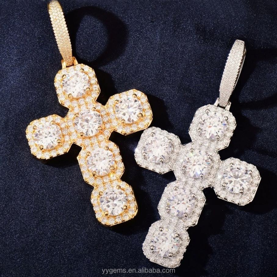 Customized Square Clustered VVS Moissanite Cross Pendant Pass Diamond Test 925 Silver Pendant Religious Accessories Jewelry