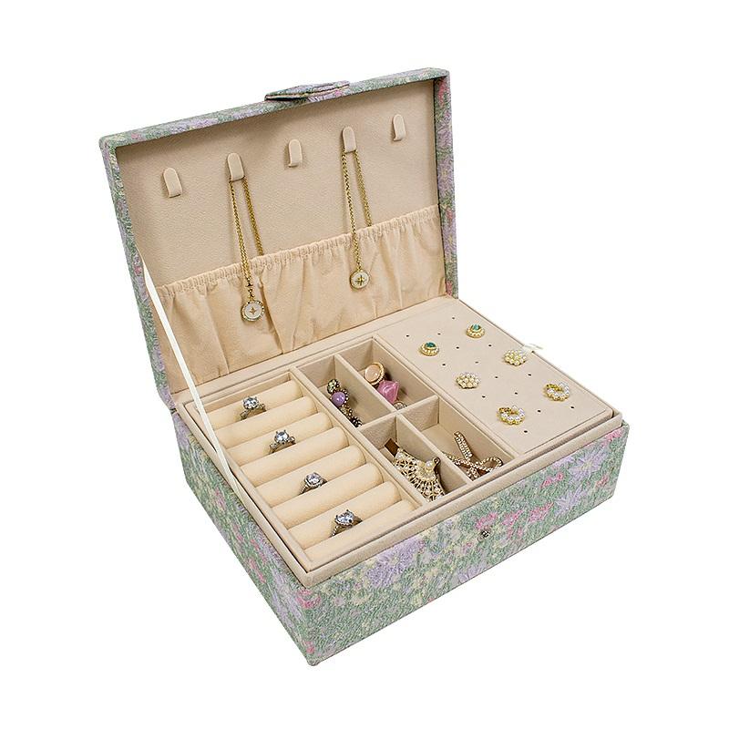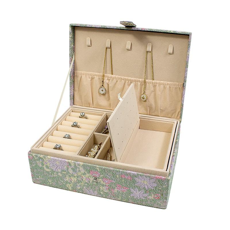 Boîte à bijoux double couche exquise imprimée en tissu personnalisé boîte à bijoux de stockage de grande capacité