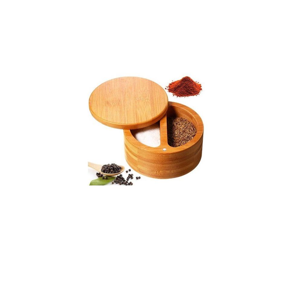 Boîte à sel en bois de forme ronde carrée personnalisée Nouveaux outils d'herbes et d'épices de couleur bois naturel Conteneur de poudre de poivre économique